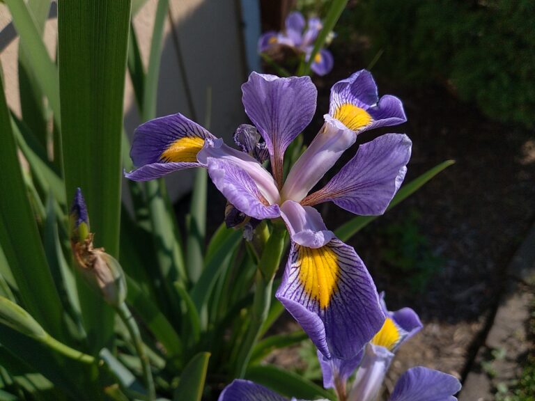 Broad, sharp foliage, a lover of wet areas, but versatile enough to deal with some dryness. Complex blue-purple flowers with yellow accents. Medicinal.
