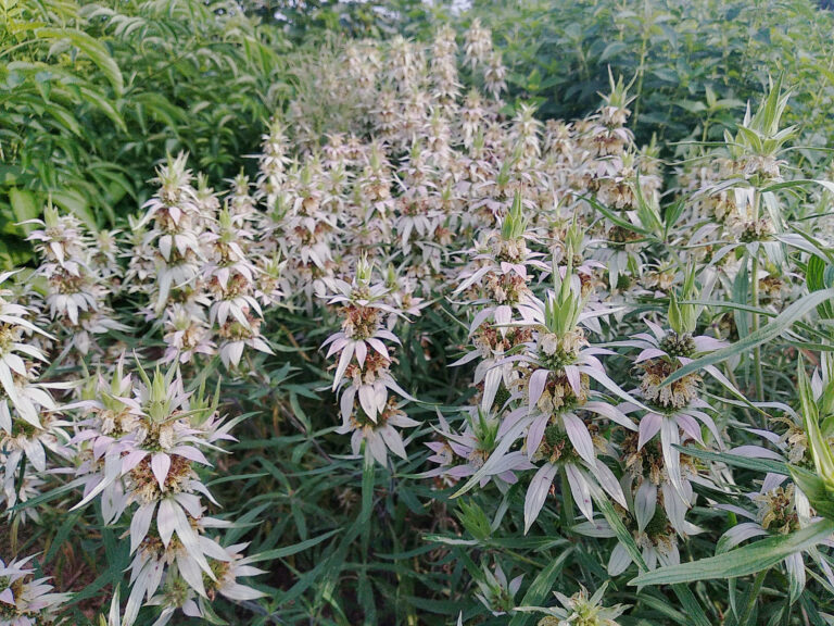 Monardas sport complex flowers, are great for teas and excellent for pollinators. Bradburiana and Punctata are shorter plants, Fistulosa grows 4-5’